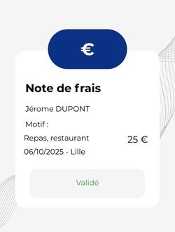 Soumettez vos notes de frais depuis l’application mobile ou l’interface web. Profitez d’une gestion automatisée, d’un processus de validation clair et d’un contrôle total de vos dépenses.